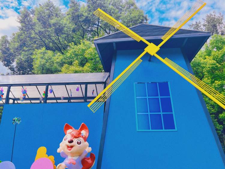 国庆假期,公园香樟广场草坪区域打造了一处开放式的风车营地,由两座马卡龙色系的“风车小屋”、八组缤纷多彩的“风车花墙”、近千支小风车共同组成“七彩风车花坛”和唯美梦幻的“风车花轮”,并以多组不同款式的铁艺风车、异形风车等作为串联。