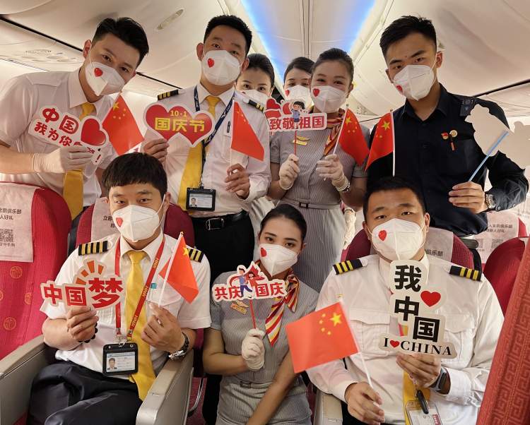 为迎国庆,海航航空集团旗下金鹏航空Y87527、7587次航班精心打造“云端主旋律·蓝天颂祖国”主题航班活动,与数百名旅客在万米高空为祖国母亲送去节日的祝福。