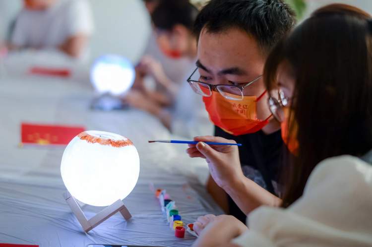 记者看到,在“星球制作”区域里,有些新人会标注上具有独特纪念意义的图案,或者两个人的昵称,或者用最喜欢的颜色,来打造星球的主色调,也有用“中国红”,代表与祖国同庆……新人们在一笔一画间,描绘出绚丽多彩又独一无二的“星球”。