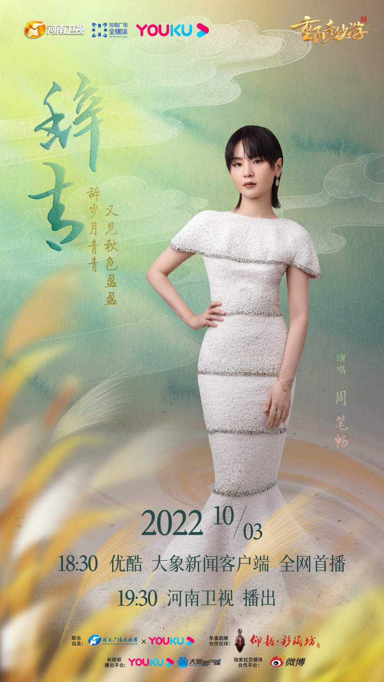 “落霞与孤鹜齐飞,秋水共长天一色。”这是王维的英姿勃发、才气高卓。歌手周笔畅以一曲原创国风新韵《辞青》,通过现代创意的“钵山图绘”的形式,带领观众走进重阳秋日的诗意画卷。