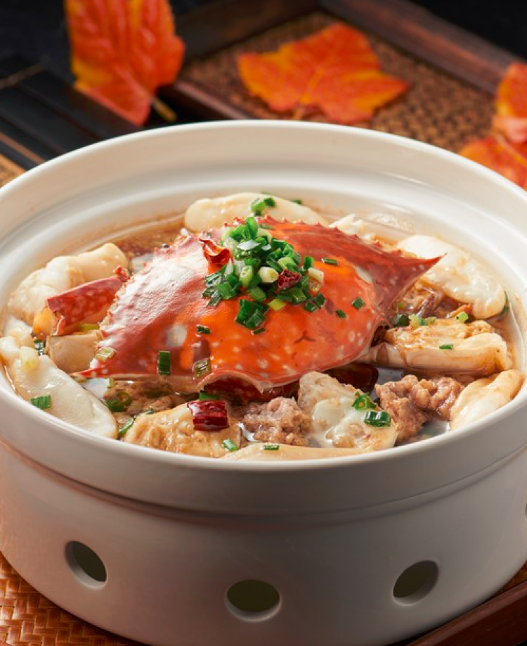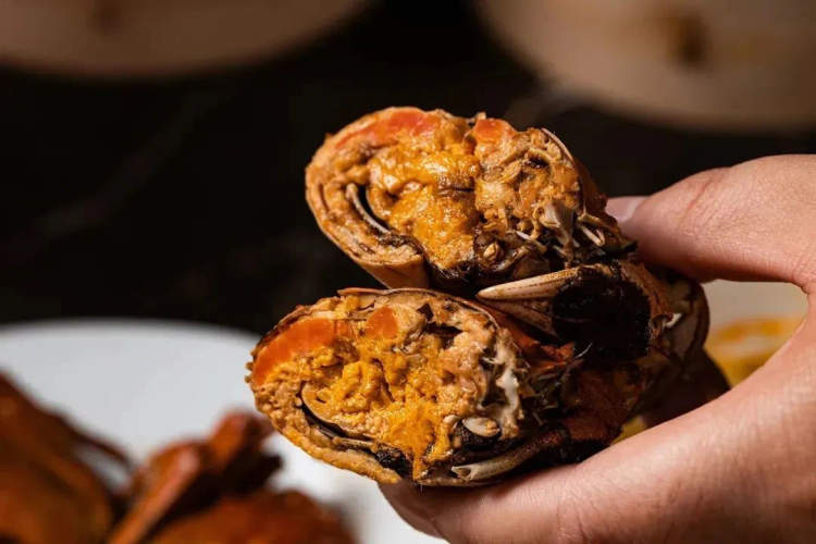当季的梭子蟹也已开始送上餐桌。膏满黄肥肉质饱满的梭子蟹也是上海人秋季餐桌上的常客之一,最家常的做法就是清蒸,但在上海德兴馆则是把梭子蟹和目鱼蛋一起蒸制,两种海鲜的叠加简直要让人“鲜掉眉毛”。