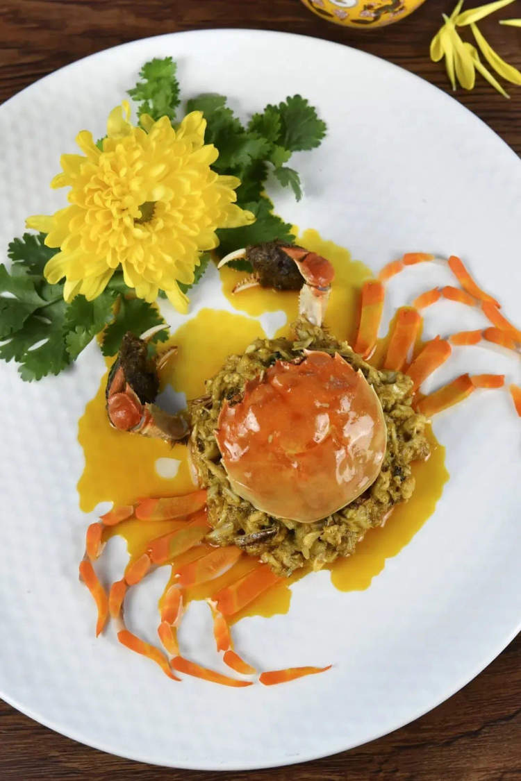 比如,王宝和“非遗”全蟹宴“一菜一格”,即不同部位的蟹肉烹饪出不同的菜,如招牌功夫菜菊花对蟹形、蟹粉明虾卷、蟹黄牡丹虾等。