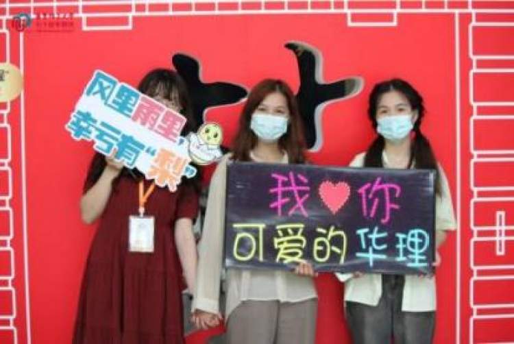 国庆当天,奉贤校区的风檐广场好戏连连,节日气氛浓厚。笛声与歌声余音缭绕,让大家沉浸在音乐的世界里;“头脑办公室”节目将大脑拟人化,用夸张的喜剧形式给大家带来阵阵欢笑;笔墨书写心意,字字表达爱意“祝祖国生日快乐”“愿华理与光同在”……