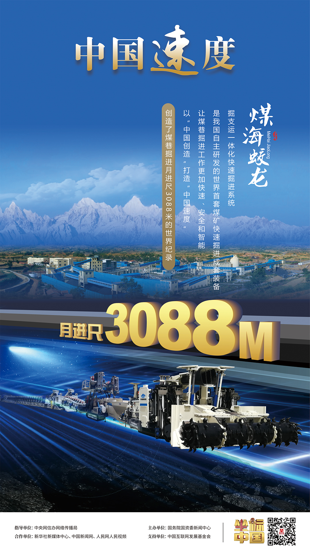 2014年,我国首创的掘支运一体化快速掘进系统在煤矿井下成功运用,单月最高进尺达3088米,创造了大断面单巷掘进世界纪录,是煤矿平均掘进速度的10倍以上。它的出现,彻底解决了煤巷掘进、支护、运输不能平行作业的世界级难题。今天,小新为您带来“坐标中国”系列主题片第二十七期,“中国速度”之《煤海蛟龙》。