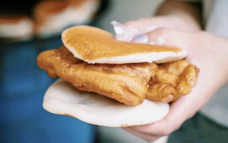 在上海快要销声匿迹的早点,在襄阳南路好不容易找到一家,五点半开锅,想吃得趁早,饼是用米浆烙出来的,提前一天用籼米、苏打水和酒酿发酵而成。师傅用油桶铁锅,边蒸边烙。一揭盖,糅了酒甜的浓浓米香铺面而来。