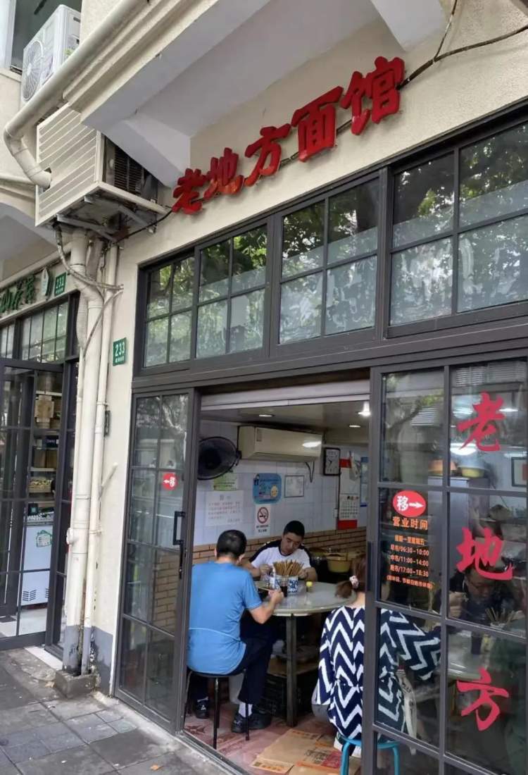 襄阳南路233号,无论早晚,只要是饭点,老地方面馆外总是排着长队。