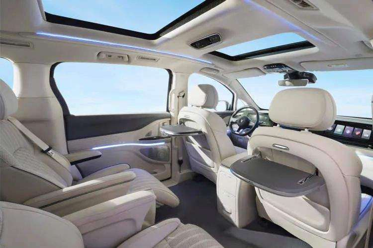车身侧面是MPV常见的方正造型,采用大幅度倾斜的A柱和平直的车顶,提供MPV常见的五立柱侧窗,利用镀铬饰条营造出悬浮屋顶的视觉效果。门把手是与GL8相同的前后连体式,标配双侧电滑门、前排无钥匙进入、中后排的隐私玻璃。多辐式20英寸铝合金轮圈显得运动时尚,配备高档次的静音舒适轮胎提升行车品质。侧裙处的亮色折线饰条起到很好的装饰作用,横向的饰条拉升视觉效果,使得整个车身更显修长。