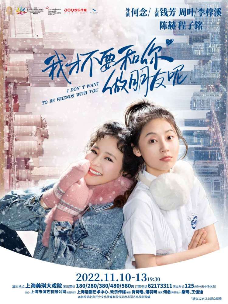 11月10日至13日,以母女亲情为内核,以青春校园生活为题材,爆笑奇幻青春喜剧《我才不要和你做朋友呢》在美琪上演,基于电视剧IP改编,讲述亲情、友情、爱情,于暖心故事中,呈现平凡生活的温度。
