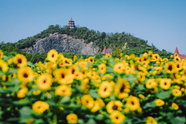 除了桂花,向日葵也在公园绿地里开了。辰山植物园靠近3号门处,就有一大片向日葵花海,与蓝天白云相映成趣,构成一幅令人沉醉的秋日油画。