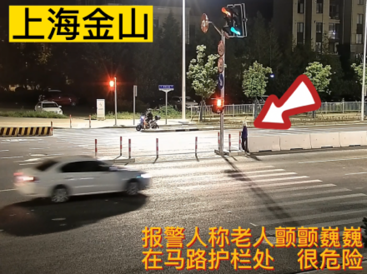 近日,上海市公安局金山分局朱泾派出所,凌晨接到群众报警,称有一位阿婆拄着拐杖,颤颤巍巍地站在马路中央护栏处,非常危险。