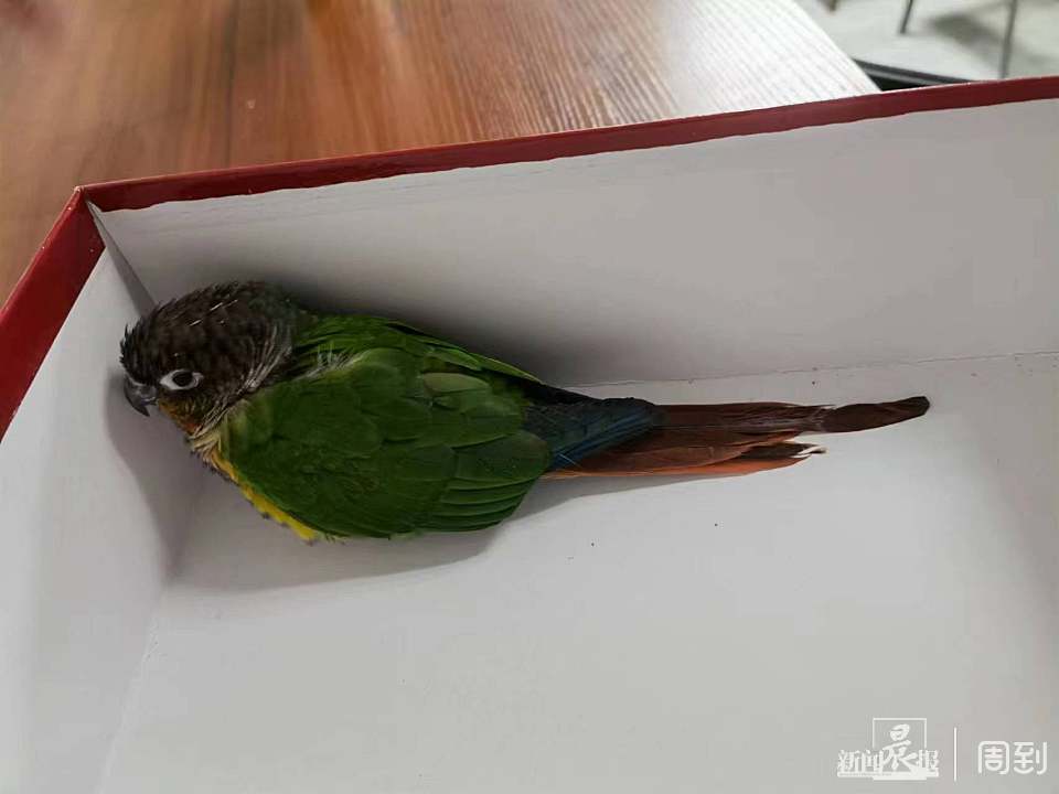 据救助站工作人员介绍,这只小鸟名为太阳鹦鹉,属于国家二级保护动物。