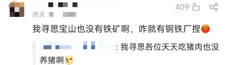 还有人想到了钢铁厂:“我寻思宝山也没有铁矿啊,咋就有钢铁厂呢?”