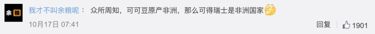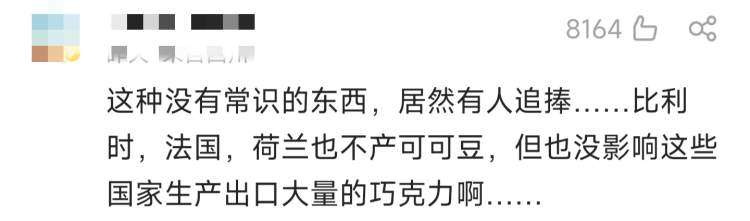 对食品安全的关心,需要建立在常识的基础上,不然就是本末倒置。事实上,在科普媒体指出之前,网友就纷纷就开启了“嘲讽模式”,有人说“众所周知,可可豆原产非洲,那么可得瑞士是非洲国家”。