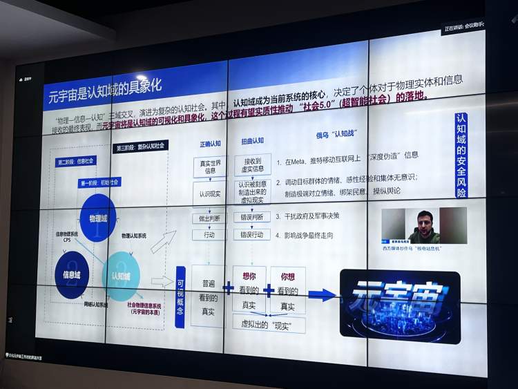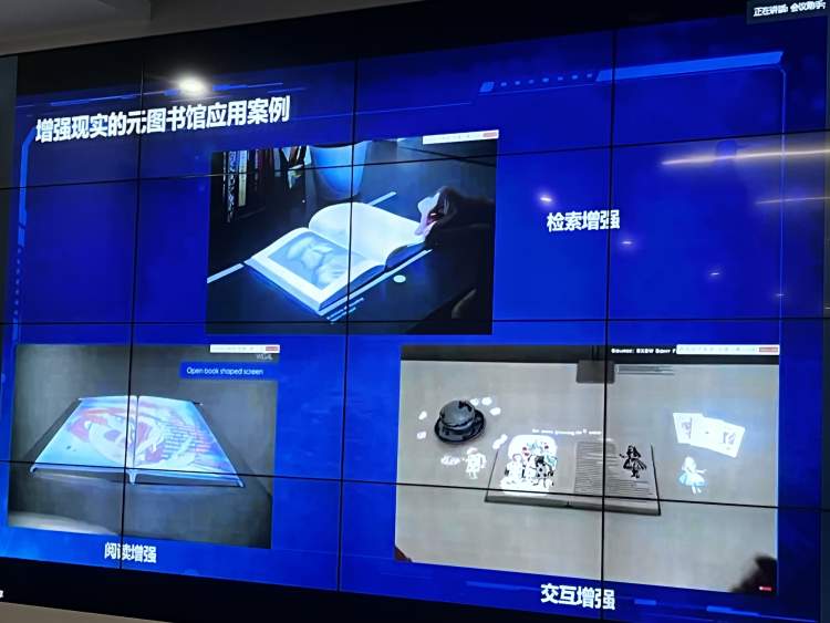 在文化领域,以图书馆为例,赵星说,在图书馆读书时,对一个词不理解,过去的做法是去查字典,这两年的做法是掏出手机查一下,元宇宙的做法是什么?用增强现实的方式,在你的桌子上直接显示出来,这个技术现在已经进入实验阶段了。读者只需要在书上划一段,上面的仪器会以投射的方式投在你桌子的空白处,这是增强现实的模式。