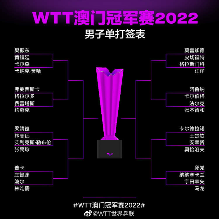 WTT澳门冠军赛签表出炉,梁靖崑对阵林高远!明日赛程安排已公布→ 周到君 2022-10-18 来源:周到上海 10月19日,WTT澳门冠军赛将正式拉开帷幕。 据@WTT世界乒联,WTT澳门冠军赛抽签结果如下↓ 中国队男乒选手樊振东、马龙、梁靖崑、王楚钦、林高远,女乒选手孙颖莎、陈梦、王曼昱、王艺迪、陈幸同将参赛。 此前,10月19日赛程安排已公布↓ 一起为国乒选手加油! 来源:周到上海 作者:周到君 赞一个 (0)