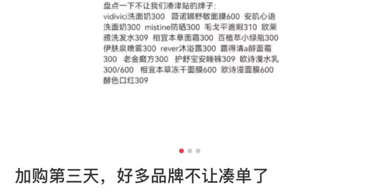 也有网友反映,沉迷“双11”加购后发现,今年大促期间很多品牌都不让凑单了。采取的方式是将产品原始价格定在300或300的倍数,再叠加使用大额优惠券从而实现低价优惠。