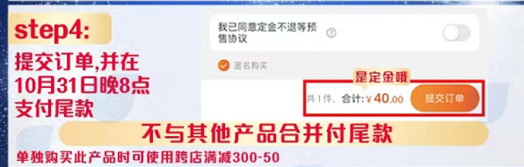 有网友就发现直播间个别加购链接商品的详情页中特别注明了单独购买此产品时依然可使用跨店满减“满300减50”津贴的活动,但“不与其他产品合并付尾款”。