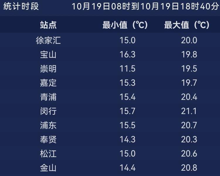 好在白天阳光在线 ,午后气温普遍都攀升至了20℃上下,哪怕早晨排在最后的崇明站,白天最高气温也有19.5℃。
