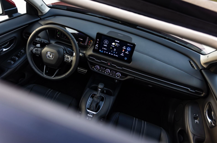 如果熟悉新款思域和型格的朋友一定有一种熟悉感,中控区域上方部分基本延续了本田最新的设计风格,包括三幅式运动方向盘、悬浮式中控屏、蜂窝状的车内装饰板以及隐藏式的空调出风口等。不过,ZR-V致在的内饰用料相比型格更上一层楼,中控台、座椅等都用上了触感和档次感都更高一筹的珠光漆真皮面料。横贯式蜂窝状的隐藏式出风口不仅效果酷炫,还简洁典雅。全系标配的10.1英寸中控液晶屏,简约的UI设计让操作一目了然。