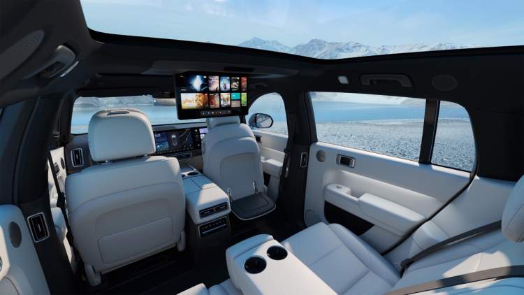 理想L7的后排中央座椅放倒后,即可变成一个超大扶手,与车门上的柔软肘托环抱整个座椅,将一个豪华舒适的电动三人沙发立刻变成两个独立的VIP座椅。配合7.3.4全景声音响系统、双层隔音玻璃,让您拥有沉浸式的音响体验。
