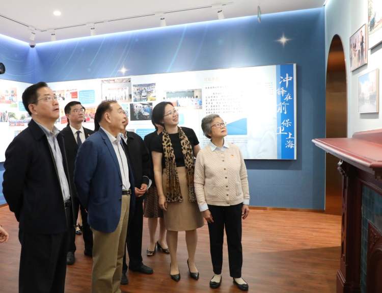 校友代表石四箴、蔡威,原上海第二医科大学校长王一飞、原上海第二医科大学党委书记李宣海、原上海第二医科大学校长范关荣、上海交通大学医学院原党委书记赵佩琪、上海交通大学医学院原院长朱正纲、上海交通大学医学院原党委书记孙大麟、上海交通大学医学院党委书记江帆、上海交通大学医学院院长范先群院士共同为院史馆新馆开馆剪彩。