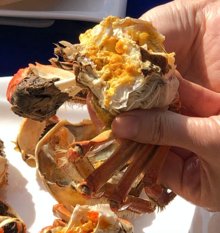 开捕之日,塘边也备好了蒸煮器皿共同“检验”。肥香四溢的膏黄比例和分量,最能说明一只上好大闸蟹的品质了。开水入锅15分钟,翻开“后盖”,油光鲜亮的肉质成色,与捕捞出水时“青背、白肚、金爪、黄毛”的外观表现一致外,“爆浆”的口感也是标配呢!
