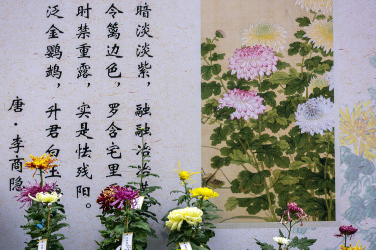 现场,还有20件由海派书画名家以菊花为题材创造的佳作展示,并对展区外围进行适当装饰,充分展示菊花文化内涵、画家画菊的技艺特色、书法家写菊的传承创新。