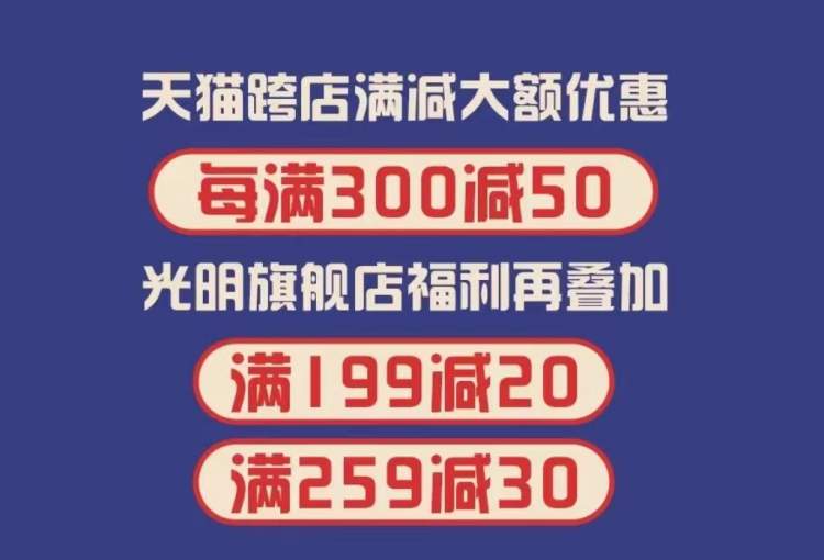 今年双十一,光明冷饮也是“囤着买”更便宜。比如,谷风系列三种口味共15支的雪糕、光明X大白兔雪糕及莫斯利安酸奶冰淇淋两种口味共20个、熊小白冰淇淋三种口味共15个,均为10元定金,尾款89元。