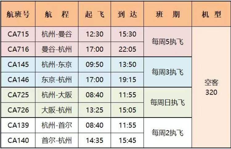 国航近日就宣布将于10月29日恢复杭州-罗马航线,此外杭州—曼谷、杭州—东京、杭州—大阪、杭州—首尔等航线也在执行中。