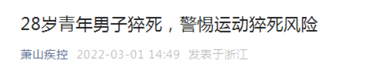 另据萧山疾控报道,今年2月23日,一名员工在单位健身房运动时,突感头晕、恶心呕吐,送上救护车时已生命垂危;到达医院后经41个小时抢救无效,不幸离世,被诊断为心梗猝死。