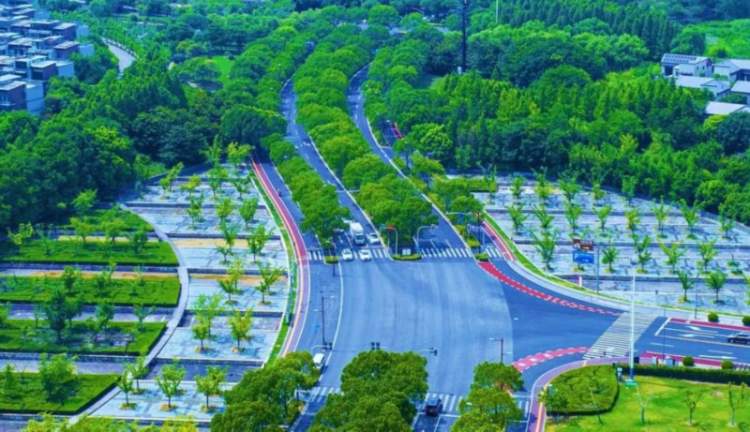同时,该道路工程的建设保护并保留了原先望园路上200多棵较大的树木,周边配上绿化景观、驳岸景观、已经不间断的小树林,成为了真正意义上的“森林大道”。