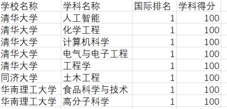 中国内地高校8个学科位居世界第一。上海大学、华东理工大学和东华大学分别有1个学科进入前50榜单。