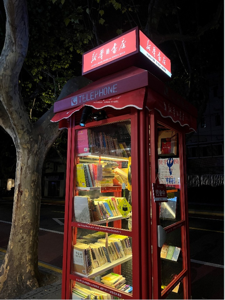 9月,上海新华路边的电话亭,被新华书店改造成一座座“快闪书店”。电话亭书店24小时开放,读者能够在这里看到《月亮与六便士》、《百年孤独》,也能够找到《五年高考三年模拟》。同时,电话亭书店还特设“换书空间”,让人们手里的闲置书籍流动起来,提升书籍的使用价值。