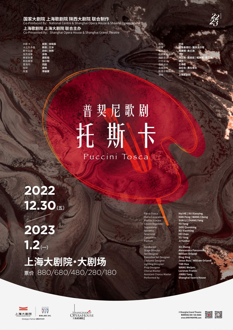 由国家大剧院、上海歌剧院、陕西大剧院三家联合制作的新版歌剧《托斯卡》将于2022年12月30日至2023年1月2日亮相上海大剧院。