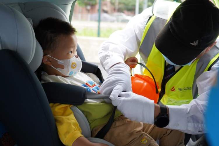 在今天的活动现场,“安心送学”驾驶员杨师傅早早来到小张同学家所在的小区。按照惯例,杨师傅穿上识别背心,事先对车辆进行消毒,检查好接送牌、车头专属识别标志等“送学”服务配置后,耐心等候学生的到来。