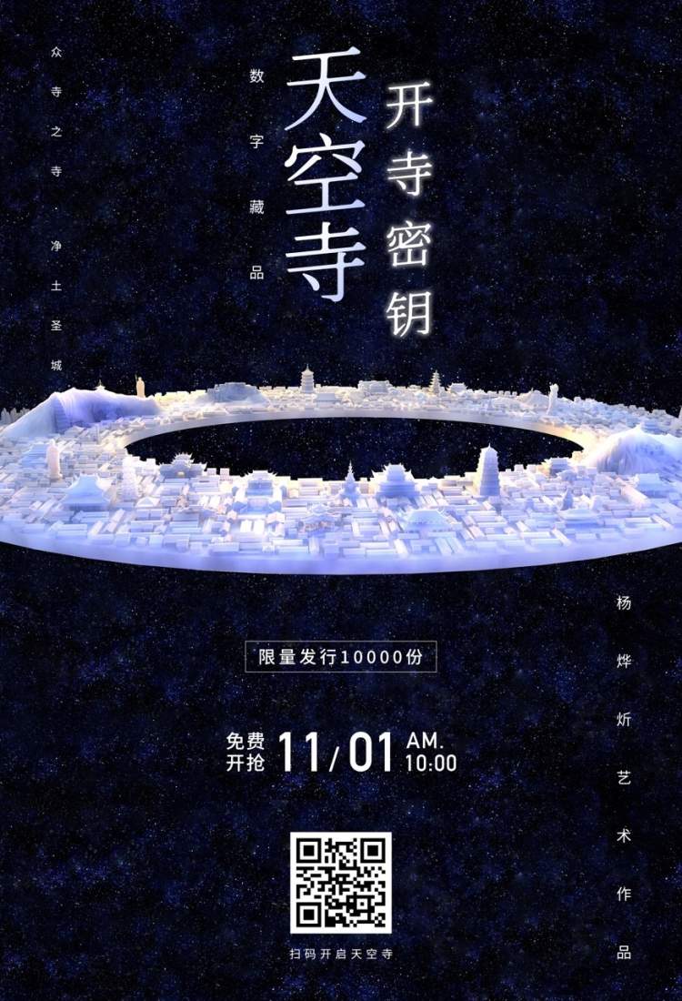 艺术家杨烨炘创作的第一个元宇宙行为艺术项目“天空寺”将于11月1日以数字藏品形式发布。