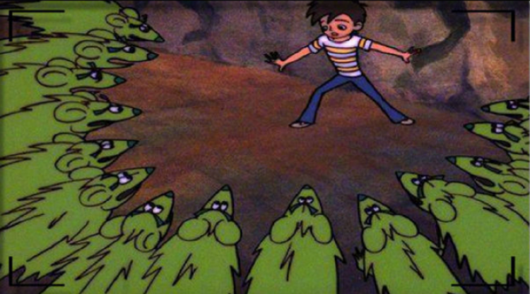 讲述了一个不爱干净又贪玩绰号为“邋遢大王”的男孩误闯“地下老鼠王国”,在小白鼠的帮助下,与大灰狗、小花猫一同逃离到地面的故事。