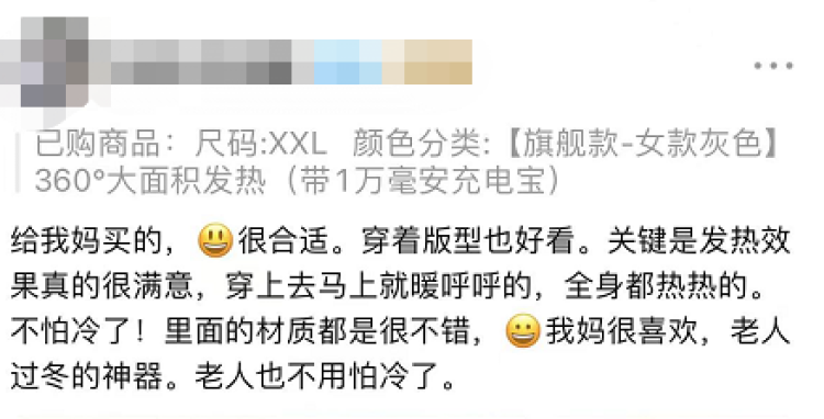 还有网友表示:今年冬天有了电加热服,再也不怕冷了↓