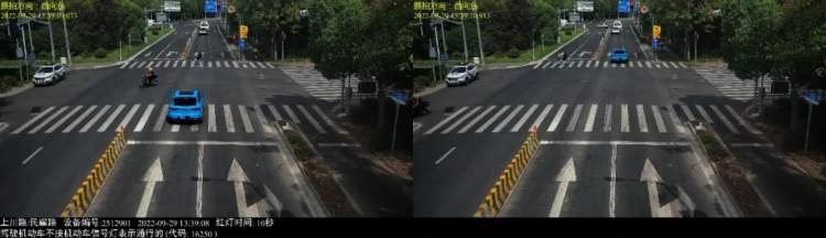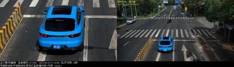 ▲2022年9月29日13时39分,号牌为沪FFD***的小型普通客车在上川路民耀路,实施了“驾驶机动车不按机动车信号灯表示通行的”违法行为。处罚:罚款200元,记6分