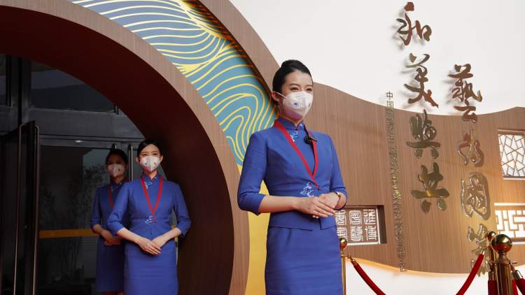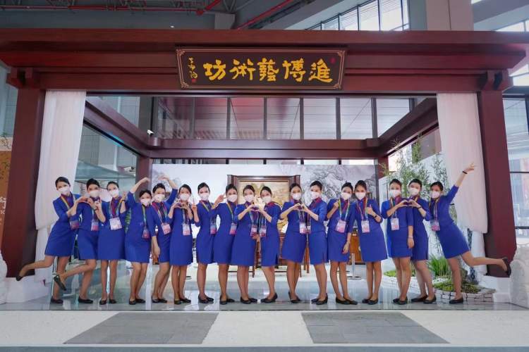 本届进博会,这支团队共派出了16位成员承担该展区160余件艺术珍品的讲解工作。(相关报道:《“小燕子”连续5年飞来进博,百名东航礼仪志愿者准备好了!| 进博倒计时》)从青花瓷到珐琅彩,从苏绣到雕塑,她们如数家珍,将艺术品的前世今生娓娓道来。