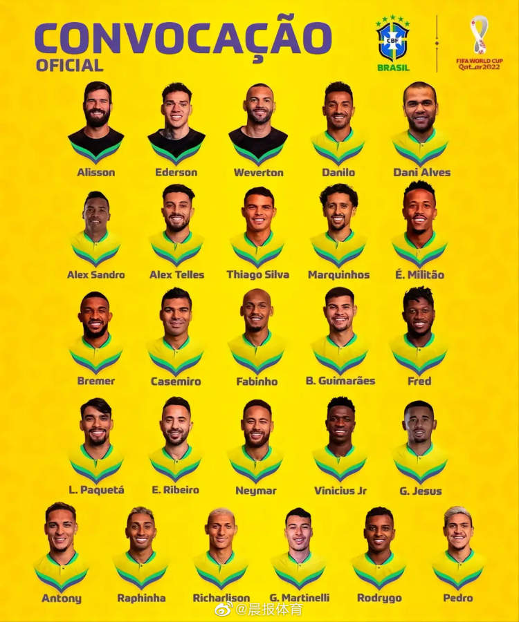 这份名单中,39岁老将阿尔维斯与马丁内利、里沙利松入选,利物浦前锋菲尔米诺、阿森纳后卫加布里埃尔和马德里竞技的库尼亚遗憾落选。