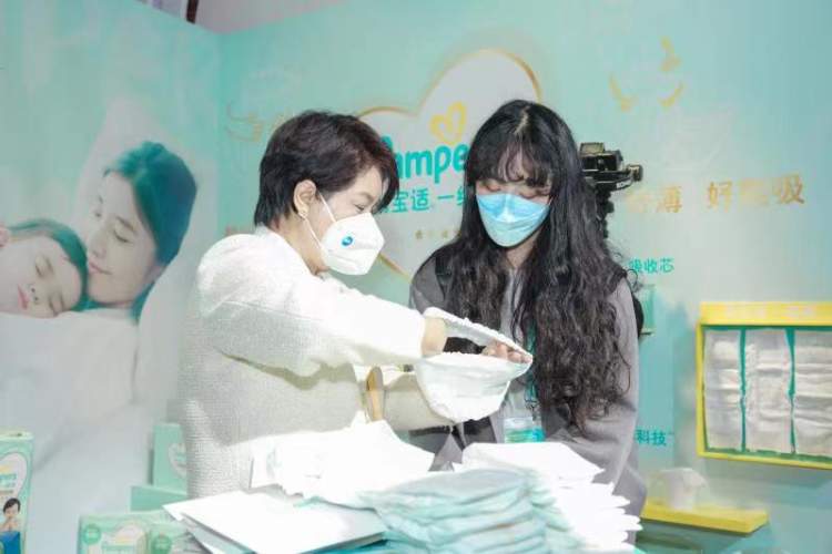进博会现场,帮宝适的新一级帮、黑金帮等新品亮相。据相关工作人员介绍,新一级帮纤维采用0.8D纤维,大概相当于头发丝直径的1/7,是目前市面上最细的纤维,能带来奢软享受。
