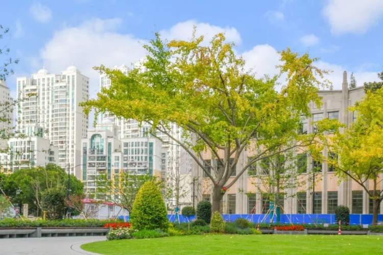 此次,虹口区绿化部门结合场地原有建筑拆除,对花园进行了重新设计建设,保留历史建筑旧称,以“开敞绿地、景观共享、映衬历史、延续风貌”为设计愿景,复原了中央弧形草坪,保留了场地特色的银杏树林,打造全天候开放的公共绿地。