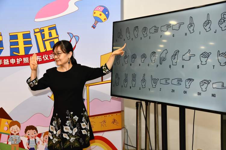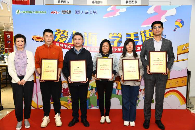 11月8日,由上海市残疾人联合会指导、上海市残疾人福利基金会发起的“爱上海·学手语”新华传媒连锁手语微课堂启动暨上海青少年益申护照发布仪式走进上海书城。