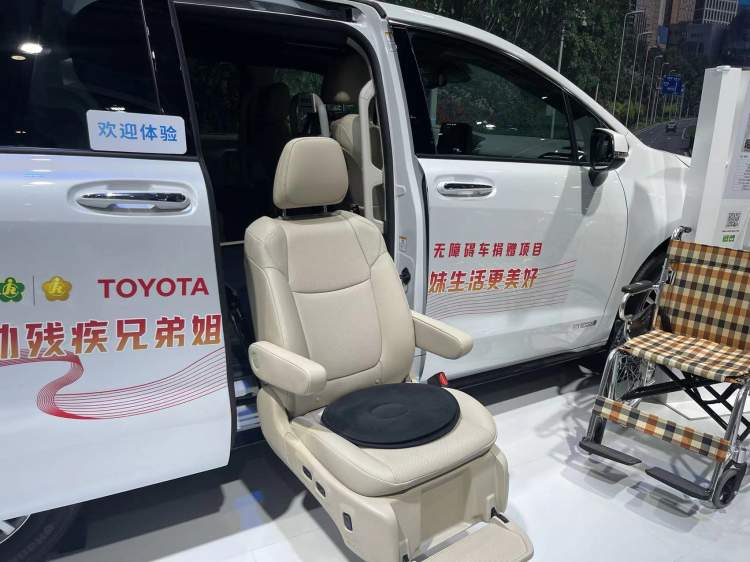 如果腿脚不变,又想郊游,那该怎么办呢?今年进博会上,丰田展台上有很多已经量产的针对行动不便人士的车辆。丰田HIACE为基础打造的无障碍露营车,能够帮助行动不便人士更舒适自由地出行。这辆车里有一个座位是专门为轮椅准备的,乘客可以直接把轮椅推上车。装载有手动驾驶辅助装置的GR Supra也是为出行不便的消费者打造的,这款车将刹车和油门就集合到方向盘上了,不需要用到腿脚,就可以驾驶车辆,即使行动不便,也可以赛车。