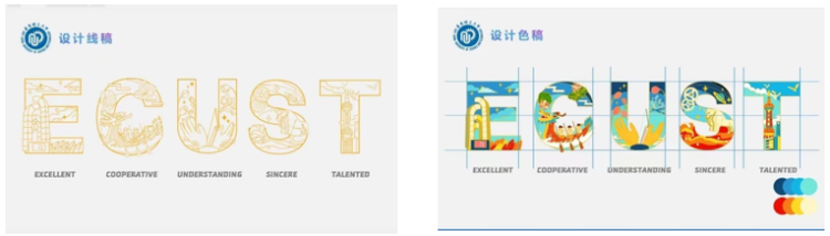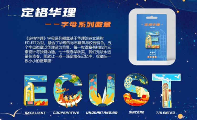 “ECUST”是学校英文名称的缩写,它们在杨诗雯的奇思妙想中化身为一枚枚灵动的徽章,跟随她来到进博会,和她一起体会更大的世界。