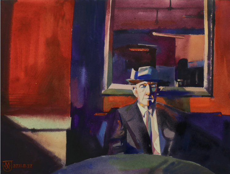 马铭骏《老克勒1》纸面水彩 39×18cm 2021