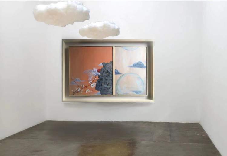 陈雨桐《开尔文大厦上的两朵乌云》 油画 、装置 80x60cm 2020