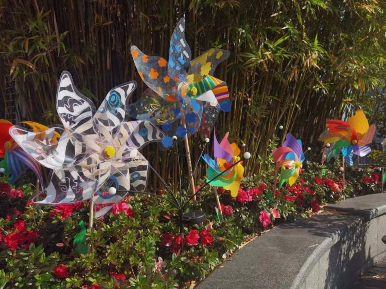 整个操场周围和二楼露台,则由同学们制作的各种手绘风车构成了“艺术丛林”!在丛林深处,还藏着一只限定版的艺术节“睛睛”,引导师生体验丰富有趣的互动。