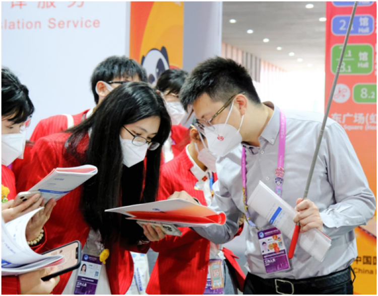 与之前不同的是,在本次进博会中,她们终于被分在了同一个工作组,同样作为内宾联络引导员,她俩以独有的默契完成第五届进博会的志愿服务。